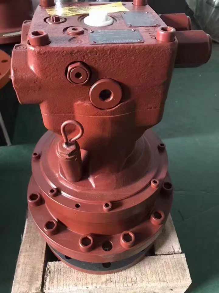 KYB MAG-170VP-2700-1型号规格的马达减速机总成,马达配置高压过载溢流阀的双重保护,内置平衡阀和机械刹车制动,可通过外部先导操纵压力控制马达的高低转速,减速机由3级行星齿轮结构组成 满足高负载扭矩传递和轴向径向的牵引拉力!